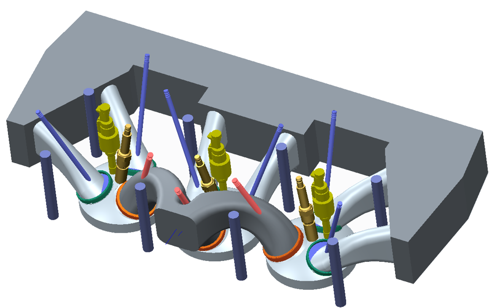 Der Ansatz von ECC beim Downsizing besteht darin, den Drehzahlbereich mit vollem Drehmoment zu erweitern, ohne ein aufwendiges und sperriges Doppelaufladungssystem zu verwenden. Daher arbeitet ein einfacher Turbolader bei niedrigen Drehzahlen mit Impulsaufladung, während bei hohen Drehzahlen ein Ausgleichsvolumen im Abgassystem für einen gleichmäßigen Abgasdruck sorgt. Um bei niedrigen Drehzahlen eine sehr hohe Abgasenthalpie zu erzielen, entwickelt ECC einen Zylinderkopf für Dreizylindermotoren mit extrem kleinem Abgasvolumen. Das Gesamtvolumen zwischen Ventilen und Turbine beträgt etwa die Hälfte des Volumens eines einzelnen Zylinders. Bei höheren Drehzahlen würde der Turbolader mit dieser Konfiguration zu hohen Ladedruck und Gegendruck erzeugen, sodass das Abgasvolumen vor der Turbine erhöht werden muss. Durch das größere Volumen werden die Druckwellen gleichmäßiger und die Absorptionsleistung der Turbine verbessert.